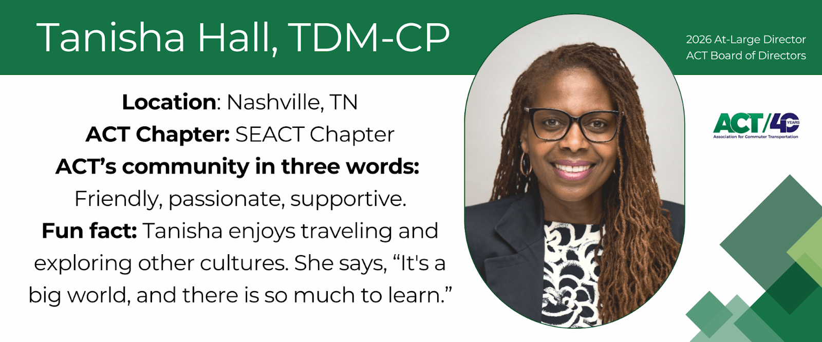 Please join us in welcoming Tanisha to ACT's Board!