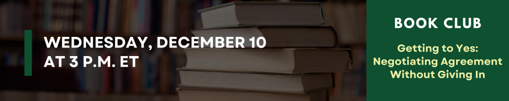 Looking to strengthen your communication and negotiation skills in the year ahead? Join ACT’s final Book Club of the year and get a head start on your New Year’s goals with Getting to Yes: Negotiating Agreement Without Giving In (By: Roger Fisher and William L. Ury) — the timeless guide to achieving successful outcomes without sacrificing relationships.