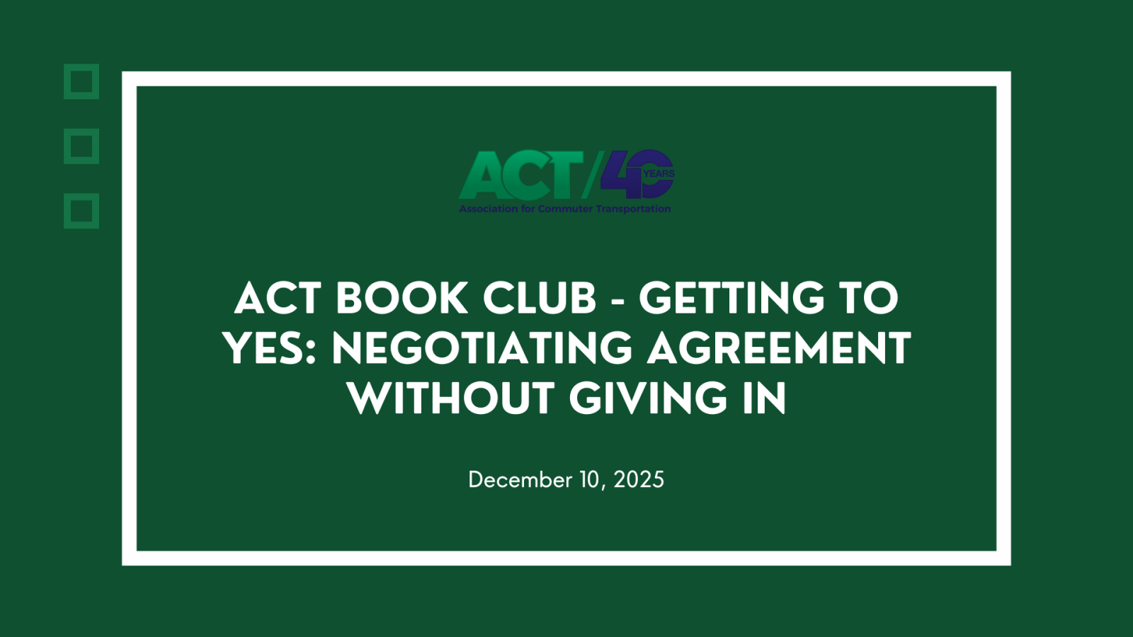 ACT Book Club - Getting to Yes: Negotiating Agreement Without Giving InDecember 2025 |